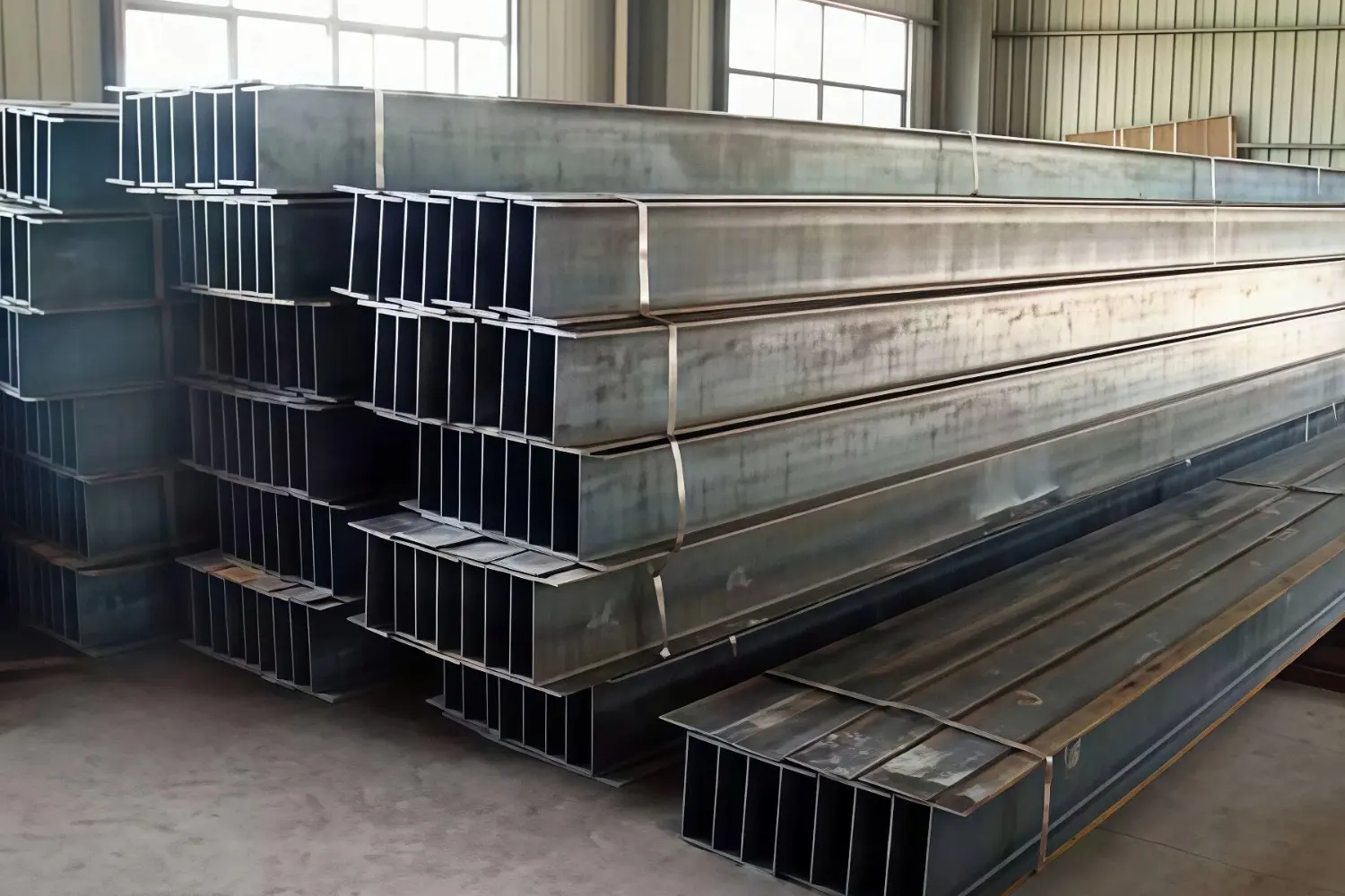 Hot-rolled H-shaped steelIt is made using a four-roll hole-type rolling process, through procedures such as heating, rolling, edge trimming, and straightening. Unlike the two-roll rolling of ordinary I-beams, this process endows it with characteristics of low energy consumption and cost advantages.